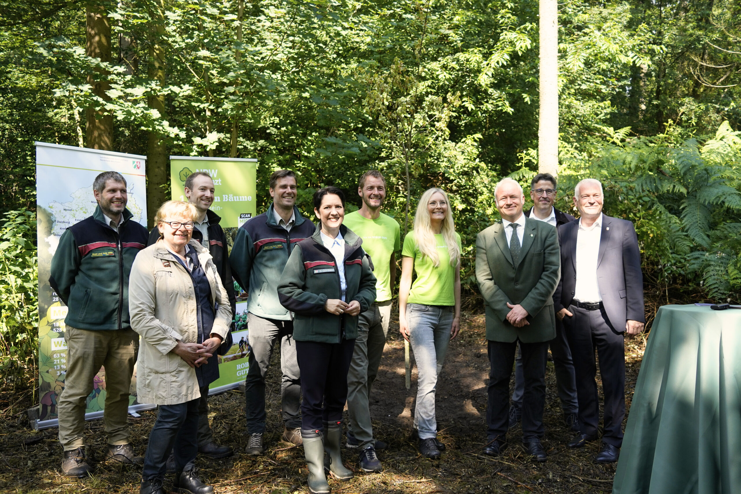 Gemeinsam mit Robin Gut, dem Landesbetrieb Wald und Holz Nordrhein-Westfalen sowie der Ministerin für Landwirtschaft und Verbraucherschutz, Silke Gorißen, wurde in Alpen nicht nur ein Baum gepflanzt, es wurde auch ein wichtiger Meilenstein gesetzt: Mit der feierlichen Unterzeichnung eines „Letter of Intent“ sichert das Land NRW zu, für die Aktion eigene Staatswaldflächen zur Verfügung zu stellen.